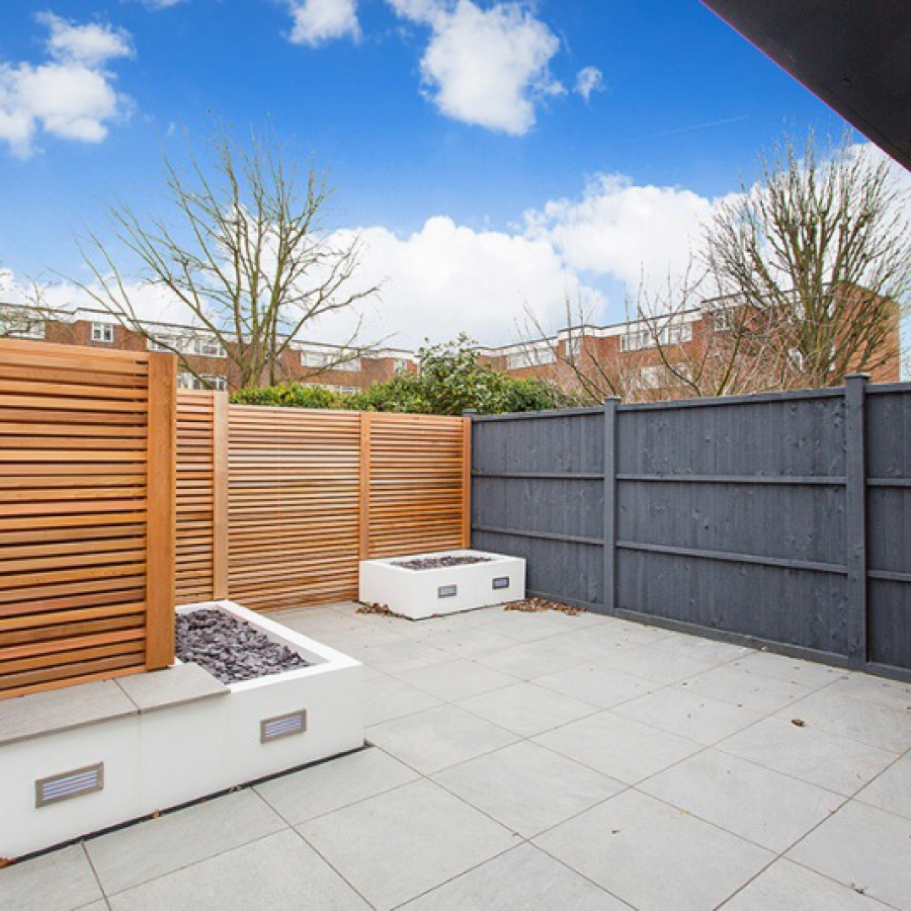 In the garden we installed timber decking and custom made fencing to create a modern private outdoor garden area.